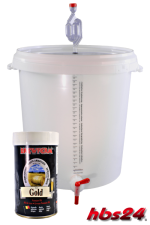 Gär- und Braueimer 30 Liter, Komlett mit Auslaufhahn, Skala, Gäraufsatz