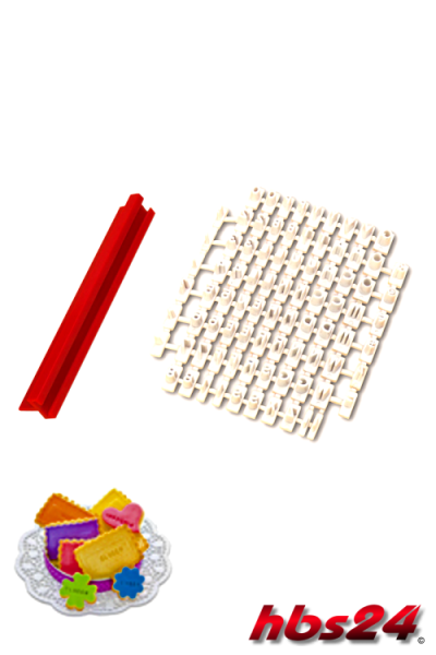 - Mit diesem Textprägeset erweitern Sie das Keks-Ausstecher-Set BAS6803 um 55 Buchstaben.
