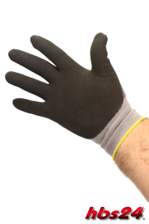 - Innenhand und Fingerkuppen mit speziellem Nitril-PU-Gemisch beschichtet, graues Strick-Stretch-Gewebe außen