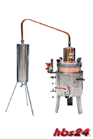 Mit Professionellen doppelwandigen Destillierkessel mit Wasserbad. Verhindert Anbrennen des Gelägers und ermöglicht eine perfekte Temperaturregelung. Ausgestattet mit hitzebeständigen Gummidichtungen für einen perfekten Verschluss. Kühlelement mit Scheiben.