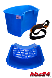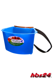 Der Erntekorb ist aus lebensmittelechtem Polypropylen und hat eine Kapazität von 9 Litern. Der Tragekomfort wird durch die runde Form, die ergonomisch am Körper anliegt, unterstützt. Der beste Standort am Körper ist die linke Seite für Rechtshändler und die rechte Seite für Linkshändler. Aufgrund des perforierten Bodens, ist ein kontinuierlicher Luftaustausch gewährleistet.