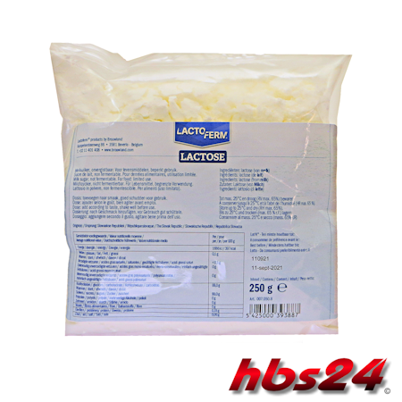 Nicht fermentierbarer Milchzucker. Ideal zum Süßen von Bier und Wein. Süßkraft im Verhältnis zu Kristallzucker: 0,16 (Kristallzucker oder Saccharose = 1).