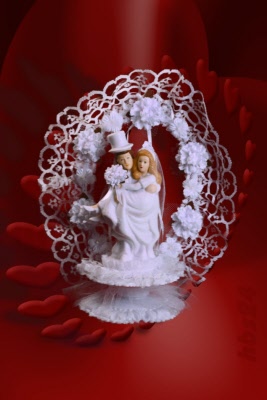 Porzellan Brautpaar mit Blüten zart-rosa 19cm