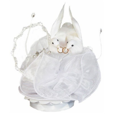 Taubenpaar mit Ringen auf Perlenbogen und Schmeterlingen dekoriert, Material: Kunststoff / Tüll usw., höhe ca. 16 cm